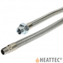 Heattec® offers DVGW-certified stainless steel gas hoses and have a pressure resistance of up to 16 bar. They are produced in accordance with DIN 3383 and DIN 3384 and equipped with a female and male thread. The hoses are available with connections from ¼" up to 2" and in lengths of 500 mm to 1,500 mm.